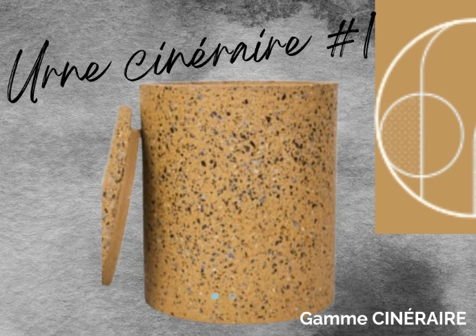 Sa teinte sable mouchetée lui confère un caractère à la fois contemporain et intemporel, permettant de s’intégrer harmonieusement dans un columbarium, un jardin du souvenir ou au domicile, selon le choix de la famille.