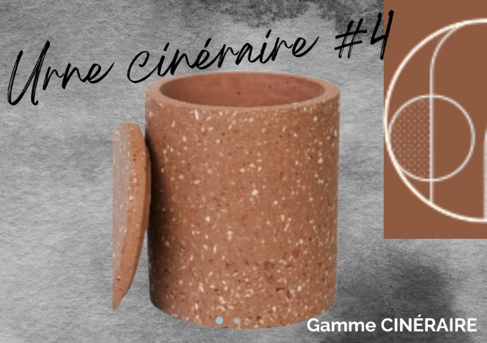 L’urne cinéraire n°4 se caractérise par une teinte terre cuite chaleureuse, subtilement mouchetée, qui rappelle la couleur de l’argile et de la terre crue. Sa forme cylindrique très épurée, surmontée d’un couvercle assorti, offre une silhouette simple et rassurante, idéale pour un hommage sobre et authentique.